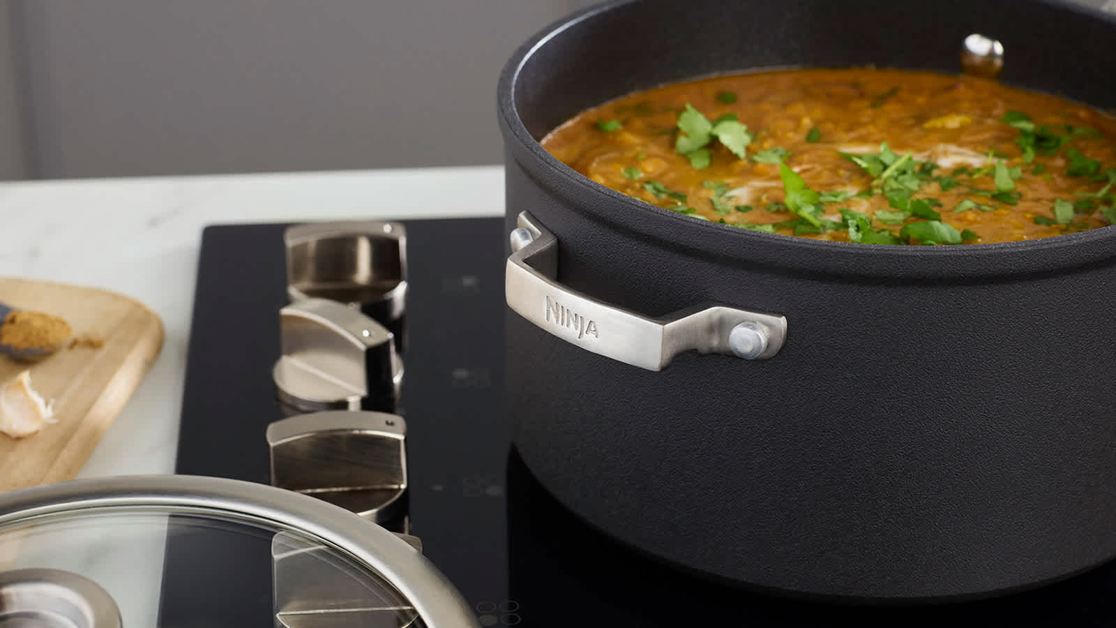 Cette batterie de cuisine Ninja Foodi ZEROSTICK est résistante aux rayures et aux ustensibles en métal, supporte les cuissons à haute température et passe au lave-vaisselle. Les éléments sont compatibles avec tous les types de feux, y compris l'induction.