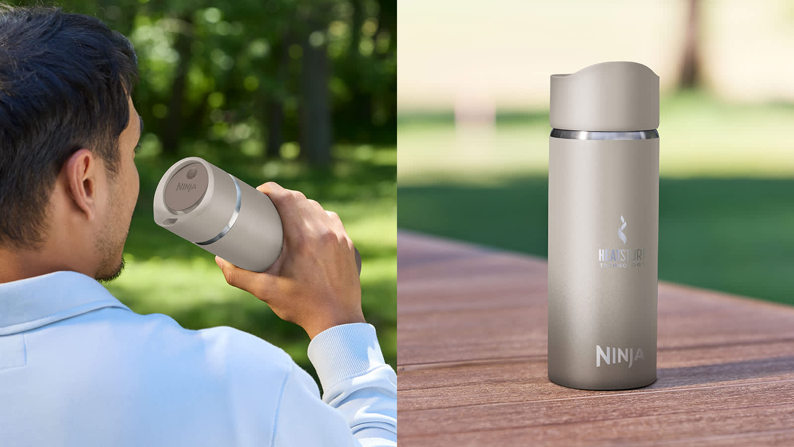- Tasse de voyage Ninja Sip Perfect avec couvercle étanche et fini beige