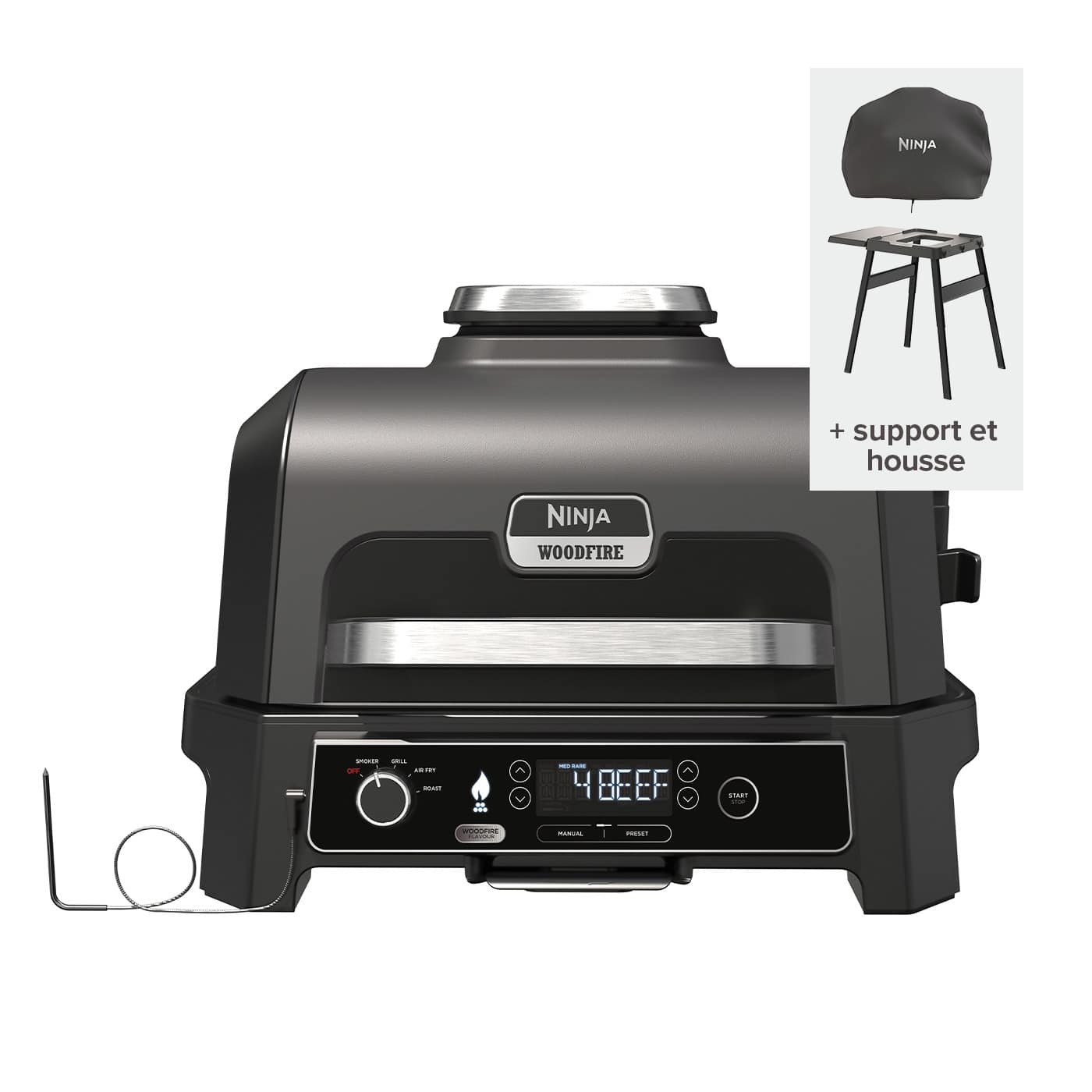 Barbecue électrique et fumoir Ninja Woodfire Pro XL avec thermosonde Smart Cook, support et housse