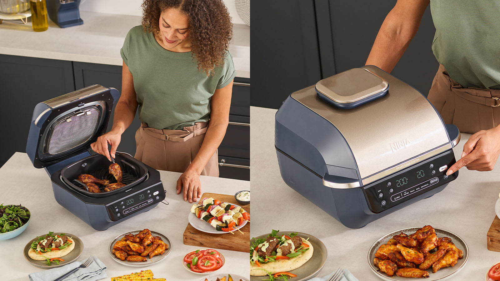 Découvrez le grill et friteuse sans huile 5-en-1 Ninja, l’appareil tout-en-un qui peut frire sans huile, cuire au four et plus encore. Préparez d’authentiques grillades de viandes, légumes et poissons comme au barbecue, ou donnez du croustillant aux frites et autres classiques.