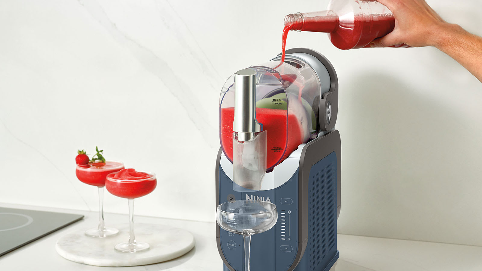 Avec le Ninja SLUSHi, fini le mixage, découvrez une préparation simplifiée des boissons glacées. Pas besoin de glaçons, pas de lames tranchantes, pas de mixage ; il suffit de verser, de mélanger et de déguster.